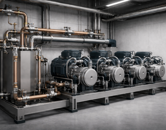 Bij transkritische CO₂-systemen wordt een vergelijkbaar principe toegepast in combinatie met flashgasmanagement, waarbij damp op tussendruk wordt afgescheiden en energetisch gunstig wordt verwerkt.